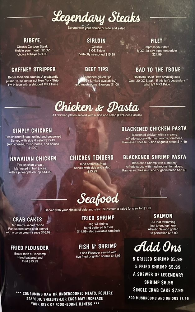 Introducing PYTs Legendary Grill & Bar, a hidden gem located at 506 N Limestone St, Gaffney, SC. This steakhouse captures the spirit of American dining with a mouthwatering menu that promises a feast for all taste buds. Customers rave about the ribeye and New York strip steaks, known for their exceptional flavor and tenderness, often described as "cut with a fork" quality. The generous portions ensure that diners leave satisfied and often with leftovers to enjoy later.