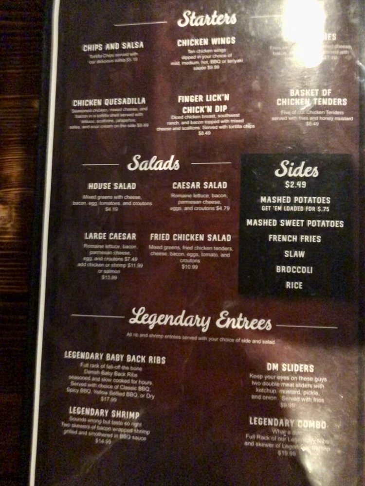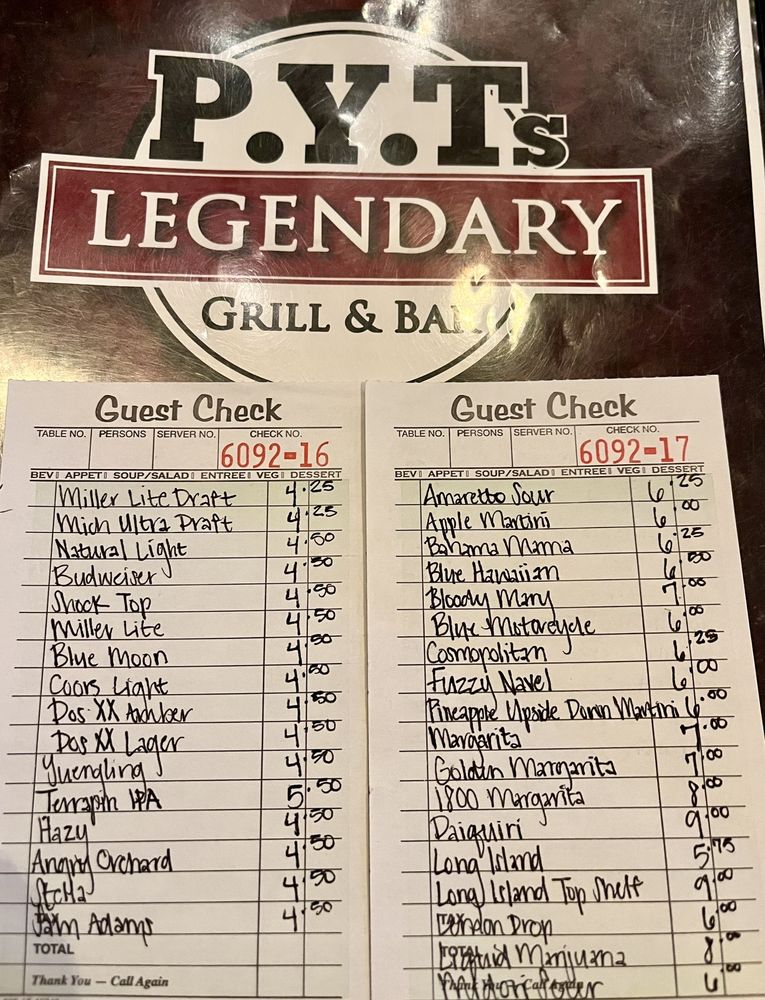 PYTs Legendary Grill & Bar Menu